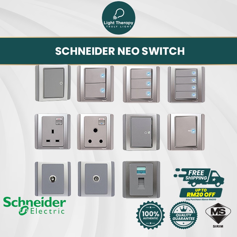 Schneider Neo Horizontal Switches Grey Silver With Blue Led Socket Plug Wall Switch Suis Lampu Rumah Soket Plug Shopee Malaysia